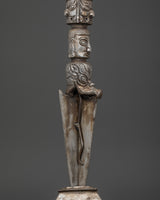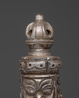 This enormous Tibetan Phurba dagger, which weighs 2.54 kg, is perfect for conspicuous exhibition in temples, meditation halls, or individual shrines. The detailed carvings include a three-sided blade, lotus designs, and angry god faces—all of which have deep symbolic significance. In addition to giving it a striking, realistic appearance, its iron body amplifies the energetic qualities linked to power, grounding, and divine protection. This Phurba represents the ferocious compassion of Vajrayana teachings, whether it is utilized in ceremony or as a piece of sacred décor.