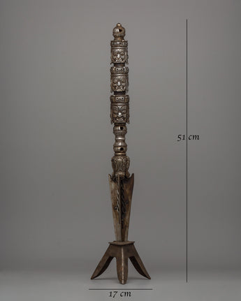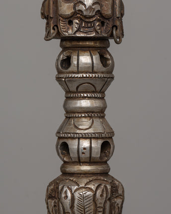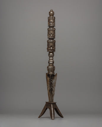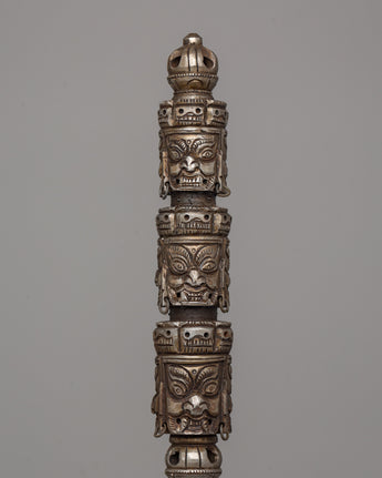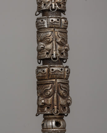 This magnificent piece is more than a holy instrument for Tibetan Buddhist activities; it demonstrates the maker's talent and commitment. The sharp, blade and finely done faces exude power and purpose, making it a standout piece in any spiritual or art collection. This Multi-Faced Iron Kila is a must-have whether you want a ritual item with deep spiritual meaning or a stunning centerpiece for your sacred area. Do not pass up the opportunity to possess a piece of Himalayan history and creativity that will inspire and preserve future generations.