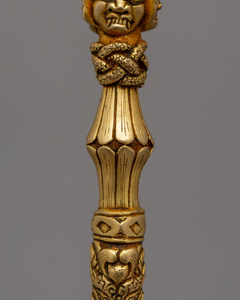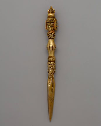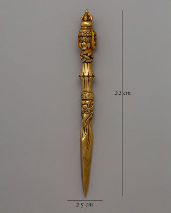 This lightweight item, measuring 22 cm in height, makes an excellent addition to any spiritual collection. Whether you're a practitioner looking for a significant ritual object or an art lover drawn to the stunning design, this phurba oozes both beauty and spiritual depth. It also makes a nice and one-of-a-kind gift for anyone who values Buddhist art and culture.