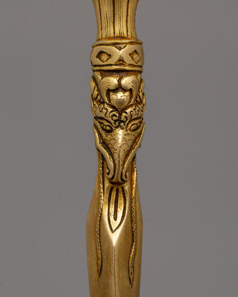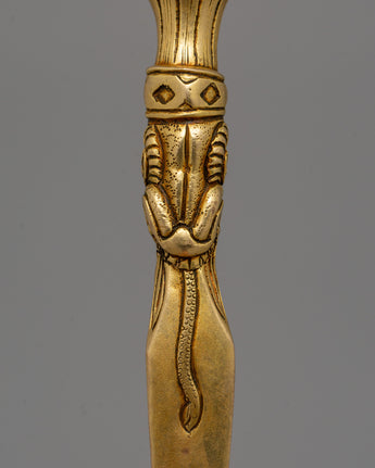 This handcrafted Phurba Ritual Dagger is a wonderful work of holy art, made from copper and finished with gorgeous gold plating. The phurba, which is traditionally utilized in Tibetan Buddhist rituals, is a spiritual weapon for overcoming bad energy and purifying environments. It's elaborate carvings and symbolic design honor the rich legacy of Himalayan workmanship, making it a prized piece for meditation, ceremonies, or holy décor.