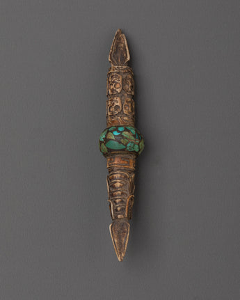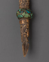 Whether you use it for personal rituals, exhibit it as a beautiful item, or give it as a present to a spiritual seeker, this handcrafted Phurba is an important element to any altar or meditation area. Its tiny size and excellent craftsmanship allow it to be exhibited anywhere while bringing spiritual energy into your house.
