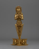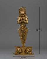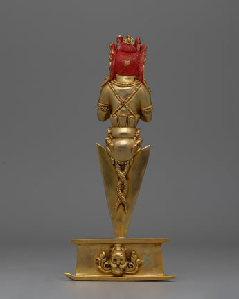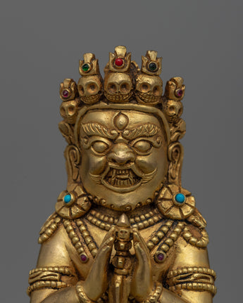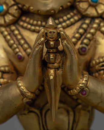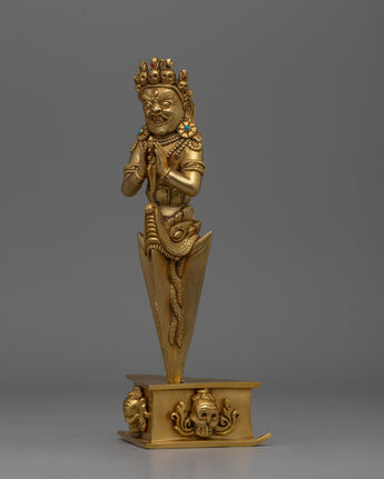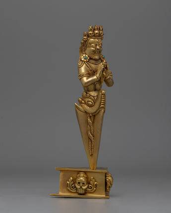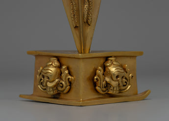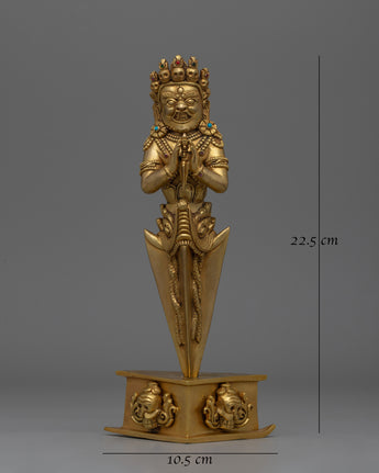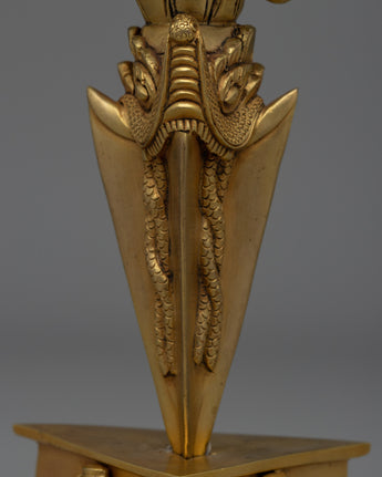 In Tibetan Buddhism, this exquisitely crafted Phurba Tibetan Ritual Dagger is a significant symbol of protection and transformation. The dagger, which is crafted from copper and has a brilliant gold plating, shines with spiritual meaning. Its importance in ceremonies and rituals is enhanced by the aura of sacred energy it emits when embedded with precisely chosen gemstones. The Phurba is an essential tool for practitioners seeking balance and purification because of its elaborate design, which features sharp lines and intricate carvings that signify the cutting through of obstructions and negative energy.