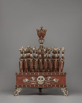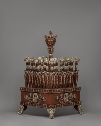 Whether you are a practitioner, a collector, or an enthusiast of Tibetan culture, this phurba set is a standout item that blends creativity, spirituality, and cultural value. The antique finish lends the collection a distinct character, making it a timeless treasure. It also makes a thoughtful present for someone interested in Buddhist traditions and a stunning addition to any holy place. This set is more than beautiful; it represents trust, protection, and transformational power.