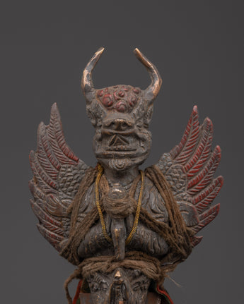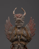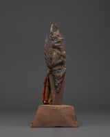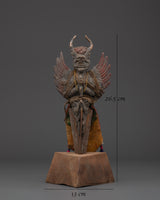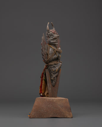 This meticulously made Protective Iron Phurba is an excellent portrayal of the Phurba's spiritual and protective powers in Tibetan Buddhism. Standing at 26.5 cm tall and weighing 1.14 kg, this sculpture is both large and intense, making it an excellent addition to any spiritual or decorative collection.