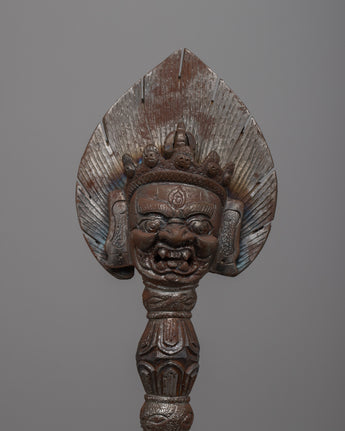 The ceremonial dagger (Sanskrit: Kila; Tibetan: phurba) is important for the expelling of evil and is thought to be especially effective in neutralizing the forces that obstruct Tantric Buddhist practice. It has ancient origins, first appearing in the Indian Rg Veda as the core blade of the vajra used by Indra to destroy the primordial cosmic snake Vritra. Kila, which means peg or stake in Sanskrit, was most likely associated with Vedic sacrifices. Meditation on the Vajrakila Tantra, an early Indian scripture first promoted in Tibet in the eighth century by Padmasambhava, one of the founding teachers of Tibetan Buddhism, is used to invoke the three-headed Vajrakila Buddha.