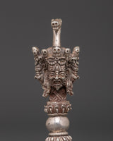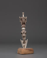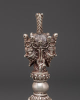 The Silver Ritual Dagger, or Phurba, features authentic three-sided blades, each edge symbolically cutting through delusion, desire, and hatred. This design reflects the wrathful serenity of Vajrakilaya’s triple-faced form, embodying the indestructible wisdom, compassion, and power of the Vajra. These triadic elements represent the convergence of body, speech, and mind, serving as a powerful tool to transmute obstacles into liberation. Crafted with sacred geometry, the Phurba is not only a ritual instrument but also a profound symbol of spiritual transformation and protection within Tibetan Buddhist practice.