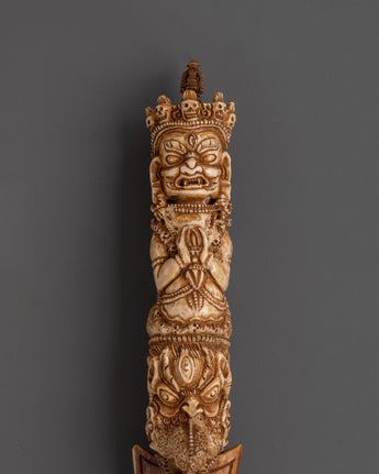Hand-Carved Tibetan Buddhist Phurba Dagger | Tantric Buffalo Bone Dagger