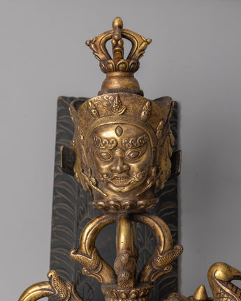 Ideal for Buddhist altars, meditation spaces, and ritual offerings, this gold-plated Tibetan Phurba is not only a functional tool but also a striking decorative piece. It serves as a symbol of strength, spiritual mastery, and the balance between wisdom and compassion. Whether used for rituals, prayers, or as a sacred art piece, this Tibetan copper phurba will enrich your spiritual practice and deepen your connection to the teachings of Buddhism.