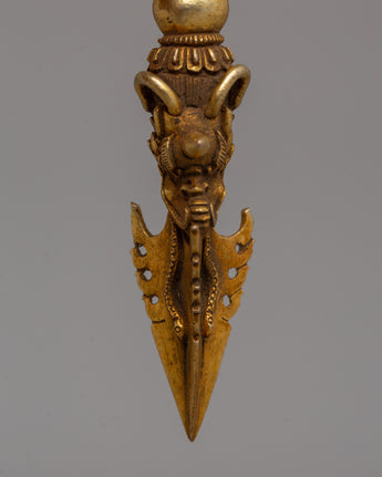 Tibetan Gold Phurba Dagger - Buddhist Altar Artifact, Meditation Tool