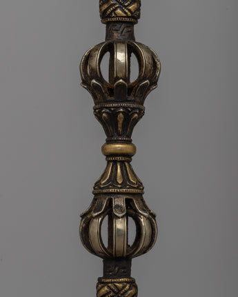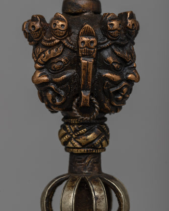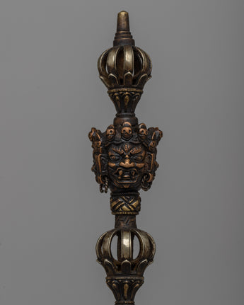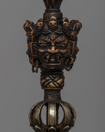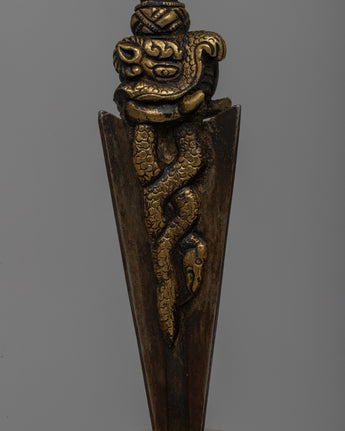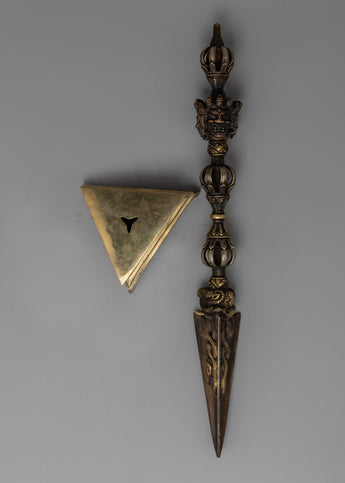 Experience the core of Tibetan customs with our Tibetan Phurba Dagger, a ceremonial object with immense meaning. Handcrafted with skill from a combination of copper, brass, white metal, and iron, the Phurba Dagger is not only a tool but also a symbol of spiritual practice, valued for its strength and beauty in Tibetan rituals.