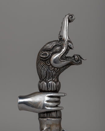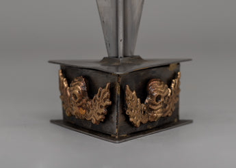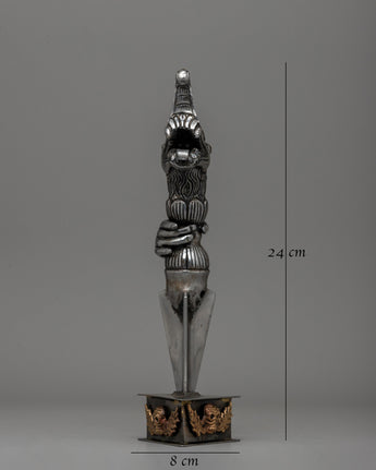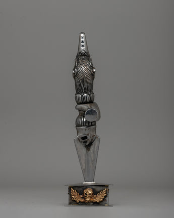 The Phurba's intricate three-sided blade and symbolic grip represent its capacity to cut through ignorance and negativity. Each carving is a meaningful tool for meditation, rituals, or exhibition in places of worship since it symbolizes spiritual strength and protection.