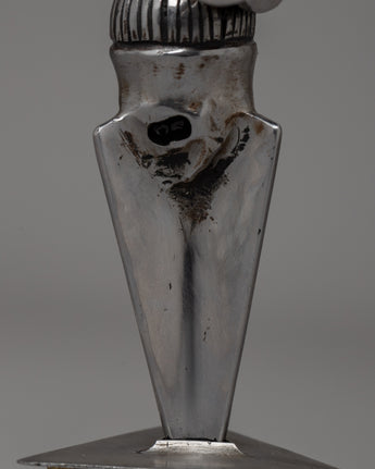 The Phurba is a symbol of protection and transformation in Vajrayana Buddhism, and it is frequently employed in ceremonies to ground heavenly energy. This Phurba is perfect for improving meditation activities or serving as the centerpiece of your spiritual collection due to its exquisite design and spiritual importance. This Phurba is ideal for enhancing meditation activities or serving as the centerpiece of your spiritual collection due to its exquisite design and spiritual significance.