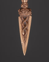 This Tibetan Phurba is a spiritual relic that is both beautiful and powerful. The copper material offers effective protection and spiritual guidance. This dagger is ideal for practitioners of Tibetan Buddhism, Tantra, or anybody looking to improve their spiritual practices. It can be used in rituals to cleanse negative energy and elicit the benefits of wrathful deities. This Phurba is a must-have addition to any spiritual altar, serving as both a practical tool and a piece of sacred art that embodies spiritual fortitude.