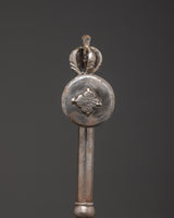 The ritual hammer, also known as the "vajra hammer" or "ritual mallet," is a sacred ceremonial tool used in Tibetan Buddhist and Tantric rituals. This hammer, which represents the power to remove ignorance and obstructions on the spiritual path, is commonly used during consecrations, invocations of deities, and the creation of sacred spaces. Crafted with symbolic motifs and powerful imagery, the ceremonial hammer embodies both physical and spiritual strength, serving as a reminder of the practitioner's inner drive to overcome obstacles and cultivate wisdom.