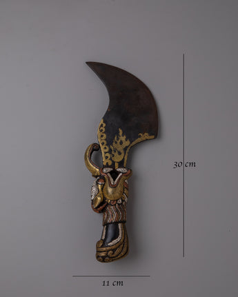 With our precisely created Handmade Tibetan Ritual Knife, which is made of iron, you can embrace the artistic and cultural legacy of Tibetan traditions. This ceremonial knife, which is 0.98 kg in weight and has dimensions of 30 cm in height by 11 cm in breadth, combines both practical use and symbolic meaning.