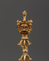 This item is expertly crafted and features intricate details, including a wrathful deity face that represents strong compassion and profound knowledge. The gold plating not only accentuates its spiritual appearance but also indicates its importance in high ceremonial rituals. The triple-blade shape depicts the dismantling of illusion, attachment, and ignorance—all essential teachings in Tibetan philosophy. Whether you are a practitioner or a collector of Buddhist relics, this Phurba is a valuable addition to any spiritual space. Include this gold-plated Tibetan ritual dagger, Buddhist shrine Phurba, and Tantric ceremonial implement on your altar to enhance spiritual insight and protection.