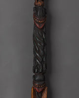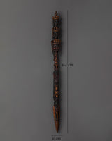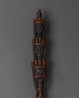 This Tibetan Spiritual Phurba Dagger is a meticulously handcrafted copper ritual tool essential for Tibetan Buddhist practices. Featuring fierce crowned faces symbolizing protective deities, it embodies strength and guardianship. Intricate carvings along the dagger represent the flow of spiritual energy, making it a powerful artifact for cutting away obstacles, negativity, and ego during meditation. This dagger invites transformation and positive change, serving as a meaningful addition to any spiritual practice.