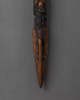 Crafted with deep care, this copper Phurba Dagger embodies protection and spiritual power. The carved faces along the blade serve as guardians, promoting spiritual safety and clarity. Its sharp tip symbolizes the ability to cut through illusions, paving the way for inner peace, personal growth, and enlightenment. Ideal for meditation, sacred rituals, or as a meaningful addition to your collection, this Phurba combines spiritual significance with artistic beauty.