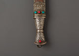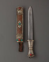 Tibetan Sword with White Metal | Ritual Item with Turquoise and Coral Gems