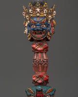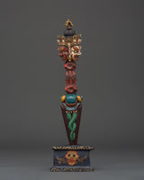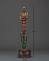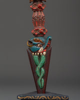 Experience the powerful spiritual energy of this Handcrafted Tibetan Wooden Phurba Dagger, a beautiful and culturally significant ceremonial implement. Standing 31 cm tall and 9 cm wide, this beautifully crafted Phurba reflects the artistic essence of Himalayan handicraft. This ceremonial dagger, crafted from wood and hand-painted with vibrant acrylic colors, is a meaningful and compelling decorative piece. It weighs only 0.234 kg and is lightweight and powerful, making it ideal for rituals and meditation.