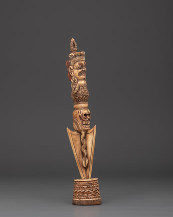 The Hand-Carved Tibetan Phurba Dagger is deeply symbolic in Buddhist rites, representing the eradication of bad energies and the foundation of spiritual activities. Each piece is meticulously made, assuring both expert craftsmanship and a spiritual connection. Whether employed as a meditation tool or as a beautiful spiritual artifact, this Yak Bone Phurba adds an atmosphere of tranquility and protection to your environment while also enriching your spiritual path with its profound cultural significance.