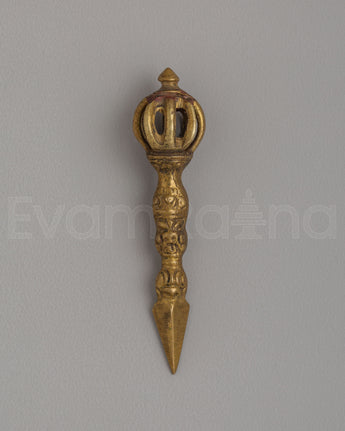 The Brass Traditional Sacred Phurba is a powerful ritual dagger used in Tibetan Buddhism for spiritual ceremonies, purification, and protection. Measuring 9 cm in height and 2 cm in width, and weighing 0.03 kg, this Phurba is crafted from brass, offering a reflective finish that enhances its spiritual significance. The Phurba is traditionally used to cut through negative energies and to invoke the protection of divine forces, making it an essential tool in Tibetan rituals and ceremonies.