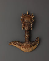The Traditional Tibetan Kartika Knife is a powerful ritual tool deeply rooted in Buddhist spiritual practice. Handcrafted from brass, this exquisite dagger features a unique crescent blade with detailed veining, symbolizing the cutting through of ignorance and negativity. Its precise craftsmanship not only honors ancient traditions but also enhances your meditation space or altar with profound spiritual energy. Beyond its striking design, this Kartika Knife serves as a symbol of protection and clarity, inviting focus and positive transformation into your sacred environment. Elevate your ritual practice with this meaningful artifact.