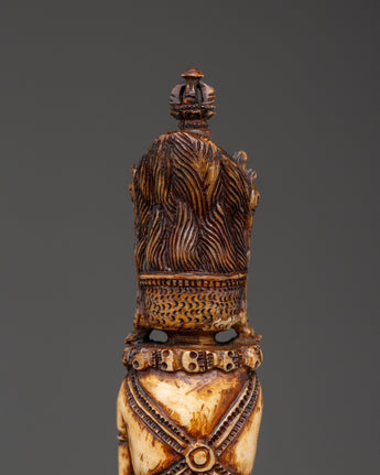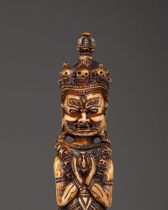 This Buddhist ceremonial dagger is not just a spiritual treasure, but also a valuable addition to your meditation room, altar, or holy collection. Its distinctive yak bone material lends a natural, earthy feel, while the elaborate engravings and powerful deity image make it a standout focal point. This handcrafted Phurba is an excellent choice for people seeking a deeper connection with Tibetan spirituality. It is a powerful symbol of protection and transformation. Whether you practice Vajrayana Buddhism, perform rituals, or simply love cultural relics, this Vajrakila Buddhist dagger is a stunning symbol of your spiritual path.