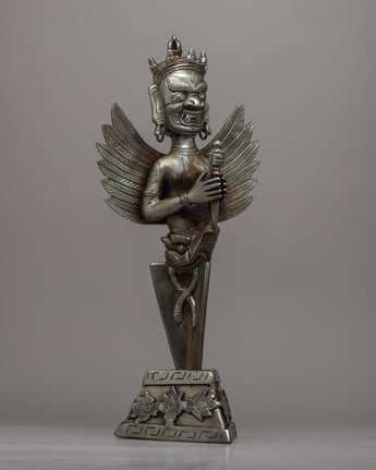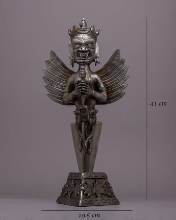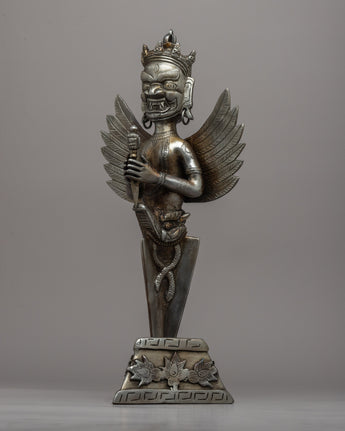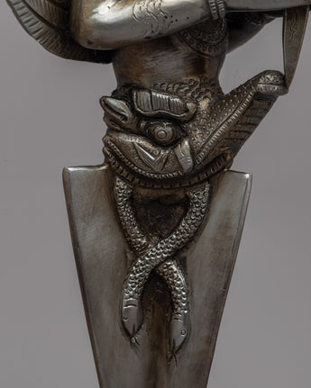 With our meticulously handmade iron Vajrakilaya Phurba with Stand, discover the depths of Tibetan spiritual practices. This huge ceremonial dagger, measuring 41 cm in height by 19.5 cm in width and weighing a considerable 3.01 kg, is intended to provide stability and weight for sacred ceremonies.