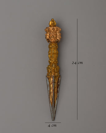 Handcrafted Copper Phurba with Gold Plating for Vajrayana Rituals