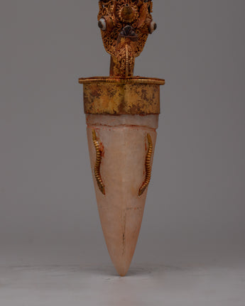 This Phurba, which is perfect for collectors and lovers of Tibetan art and culture, is a wonderful ornamental item that can also be used as a medium for meditation and spiritual practice. When exhibited in a hallowed area or as the focal point of a well-chosen variety, it personifies the core of age-old customs and spiritual knowledge, enhancing any space it is in.