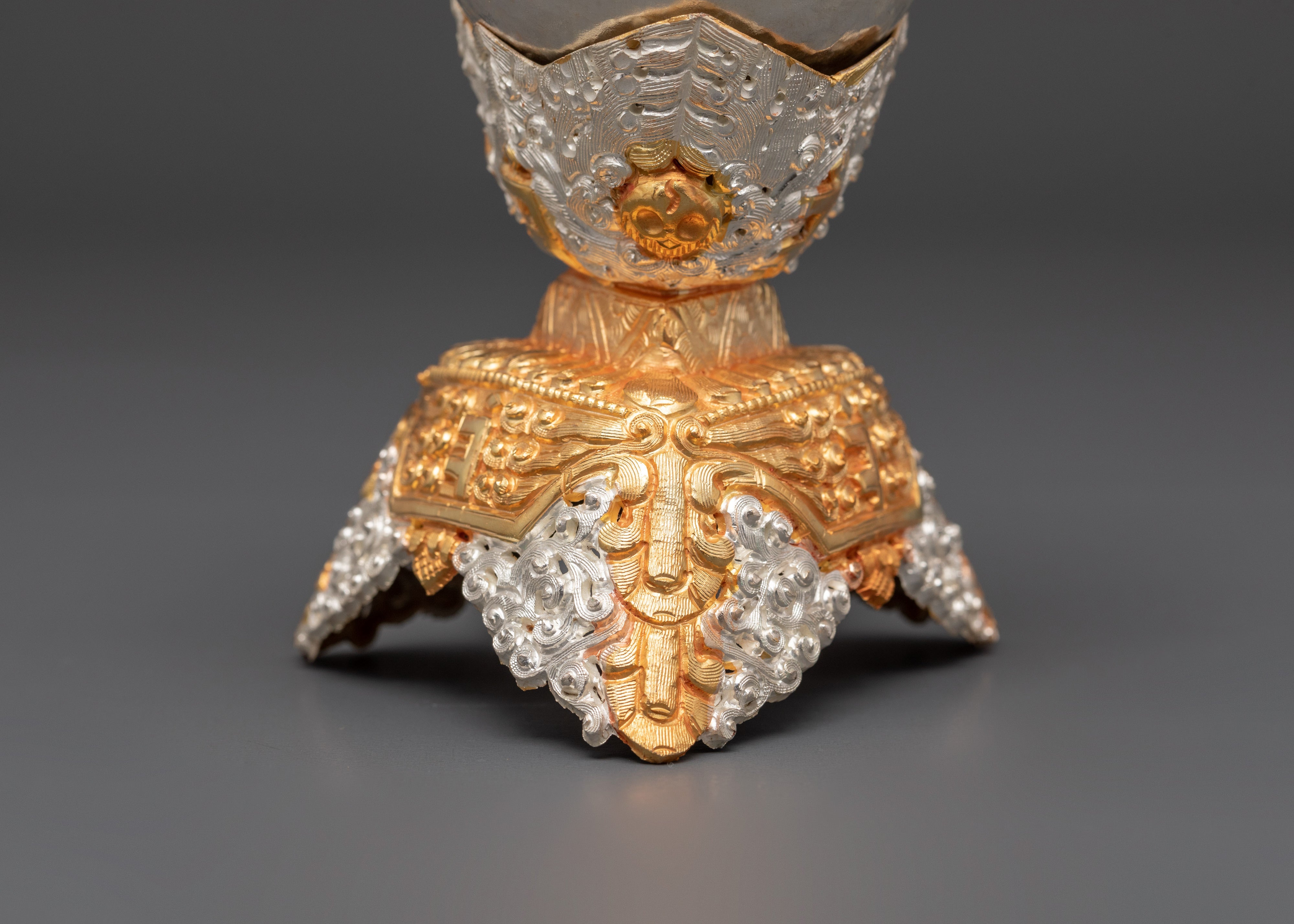 Sacred Buddhist Ceremonial Kapala | Gold, Silver Plated Ritual Skull Cup