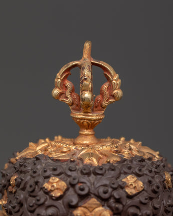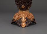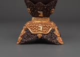 The Kapala (skull cup), which is used in high tantric rituals and god offerings, represents the offering of one's ego to the divine and the conversion of ignorance into wisdom. This exquisitely crafted, traditionally patterned, gold-plated copper kapala exudes reverence and profound spiritual meaning. It is an important instrument for both practitioners and spiritual collectors because it is ideal for use during pujas, ritual invocations, and meditation sessions. For advanced practitioners of Tibetan Buddhism, Himalayan tantric ceremonies, and vajrayana meditation techniques, this Copper Kapala Offering Set is a necessary ritual item. It's a collector's item that improves your spiritual surroundings in addition to being a holy instrument.