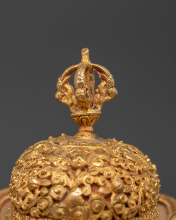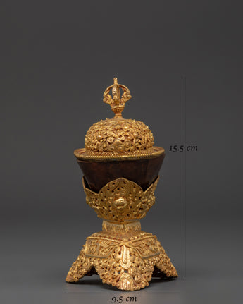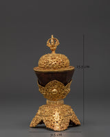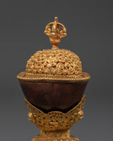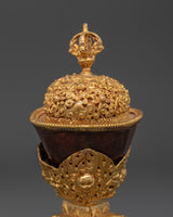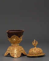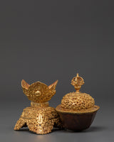 Handcrafted Ritual Kapala Set | Gold Plated Copper with Vajra Lid