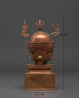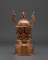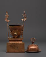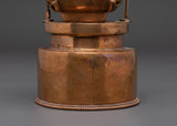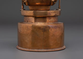 This handcrafted Sacred Kapala Ritual Cup, made of oxidized copper, is an effective tool for Tibetan rituals and spiritual activities. With a height of 25cm and a width of 10.5cm, this wonderfully carved cup represents the gift of wisdom and compassion. Its design improves meditation and holy ceremonies by adding an atmosphere of spiritual energy and clarity to your practice. The oxidized copper material, known for its connection to transformation, enhances the intentions of your rituals, making it ideal for individuals looking to further their spiritual path.
