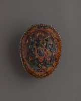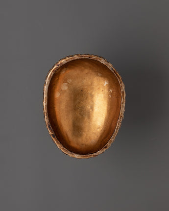 While the plastic construction maintains the Kapala's traditional appearance with intricate carvings and symbolic motifs, the silver-plated copper inlay adds an exquisite religious touch. The Kapala is a necessary object for those who practice Vajrayana, Mahakala pujas, and Chöd offerings. It is used in rituals to represent the transformation from ignorance to wisdom and from ego to compassion. This can serve as a focal point for altar arrangements or spiritual rites, or Buddhist art enthusiasts can collect it due to its graceful and balanced brass base. With its profound symbolic meaning, this Handcrafted Tibetan Kapala with silver-plated copper enhances your practice and space, regardless of whether you are a devoted tantric practitioner, spiritual seeker, or collector of genuine Tibetan ritual objects.