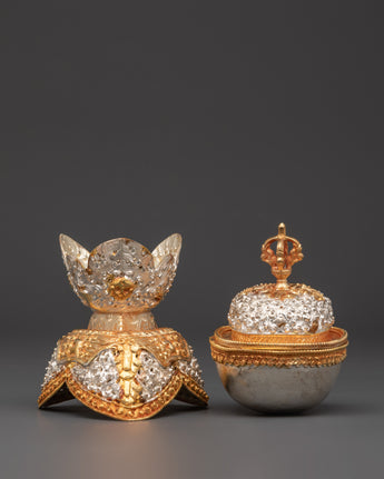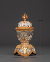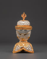 Crafted with meticulous craftsmanship, the Kapala's delicate work and rich patterns demonstrate the artists' passion and talent in creating each piece. The harmonic combination of gold and silver plating not only enhances its aesthetic appeal but also increases its spiritual power. This vase embodies the union of craftsmanship and religious heritage, making it a distinctive piece for both Buddhist practitioners and collectors.