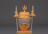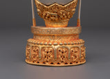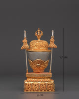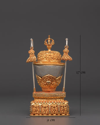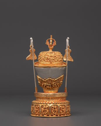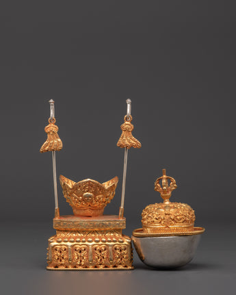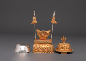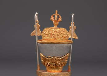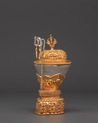 The Kapala set holds the nectar used in higher esoteric rituals. It offers liberation to gods and deities to ensure their devotion. The offerings are said to be transformed into the Wisdom Nectar, a liquid form of the deity's Enlightened Mind.