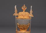 This Handmade Sacred Offering Kapala, measuring 17cm tall and 9cm wide, is an exquisite addition to any Buddhist altar. Crafted from copper and adorned with silver and gold plating, it serves as a sacred vessel for Tibetan Buddhist offerings. Its detailed, ornate design showcases exceptional craftsmanship, making it both a meaningful ritual tool and a stunning decorative piece for your spiritual space.