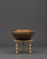 This silver-plated resin kapala, intended for tantric ritual practitioners, is perfect for holy altar arrangements, wrathful deity offerings, and high-energy meditation locations. The combination of resin, copper, and brass represents harmony between physical form and spiritual intent. Whether utilized during a ceremony or displayed as a symbol of transcendence and karmic transformation, this kapala adds authenticity and spiritual depth to any holy space.