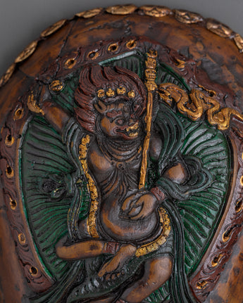 Crafted with precision and care, this piece serves as both a spiritual tool and a work of art. The coral stones indicate, and the vessel itself serves as a strong symbol in Tibetan ceremonies and spiritual activities, promoting focus and connection. This Kapala is not only a utilitarian ceremonial bowl, but it also adds a distinctive and significant touch to your holy place.