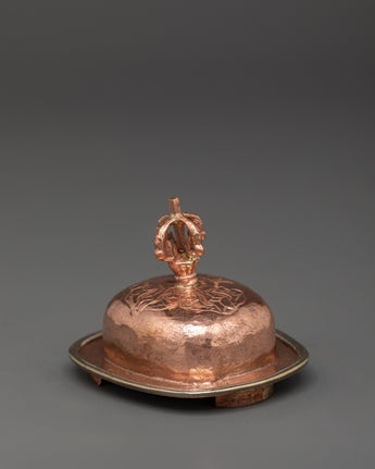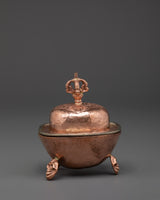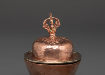 Traditionally shaped to resemble skull cups, these sacred bowls symbolize the transmutation of worldly attachments into spiritual insight. Used by monks and tantric practitioners, the Kapala set holds offerings such as wine, grains, or saffron water to honor deities and accumulate merit. Beautifully handcrafted, these copper ritual vessels make a powerful addition to your altar or ceremonial space.