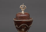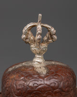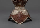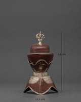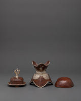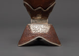 This Tibetan Kapala is both a utilitarian instrument and a beautiful piece of art that will enhance your sacred place. Whether used for ritual offerings, blessings, or meditation, the combination of oxidized copper and silver-plated materials seamlessly blends history and beauty. The half vajra at the top is a powerful emblem of spiritual strength, making this Kapala an essential tool for practitioners seeking deeper spiritual connection and healing. This cup is ideal for anyone who practices Tibetan Buddhism, energy healing, or ritualistic rituals, and it makes an essential complement to any sacred ceremony or altar setting.