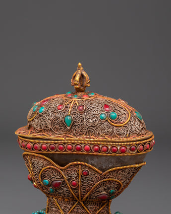 Tibetan Spiritual Kapala Offering Cup | Buddhist Altar Meditation