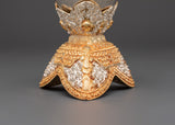 This gold and silver-plated copper Kapala set is ideal for meditation practitioners, ceremonial use, or display in sacred settings. It also acts as a significant altar vessel for transformation and inner awakening. Use this Tibetan ceremonial skull cup with a Vajra lid to enhance your tantric offering practice, adding a high level of symbolic beauty and spiritual intention to your altar.