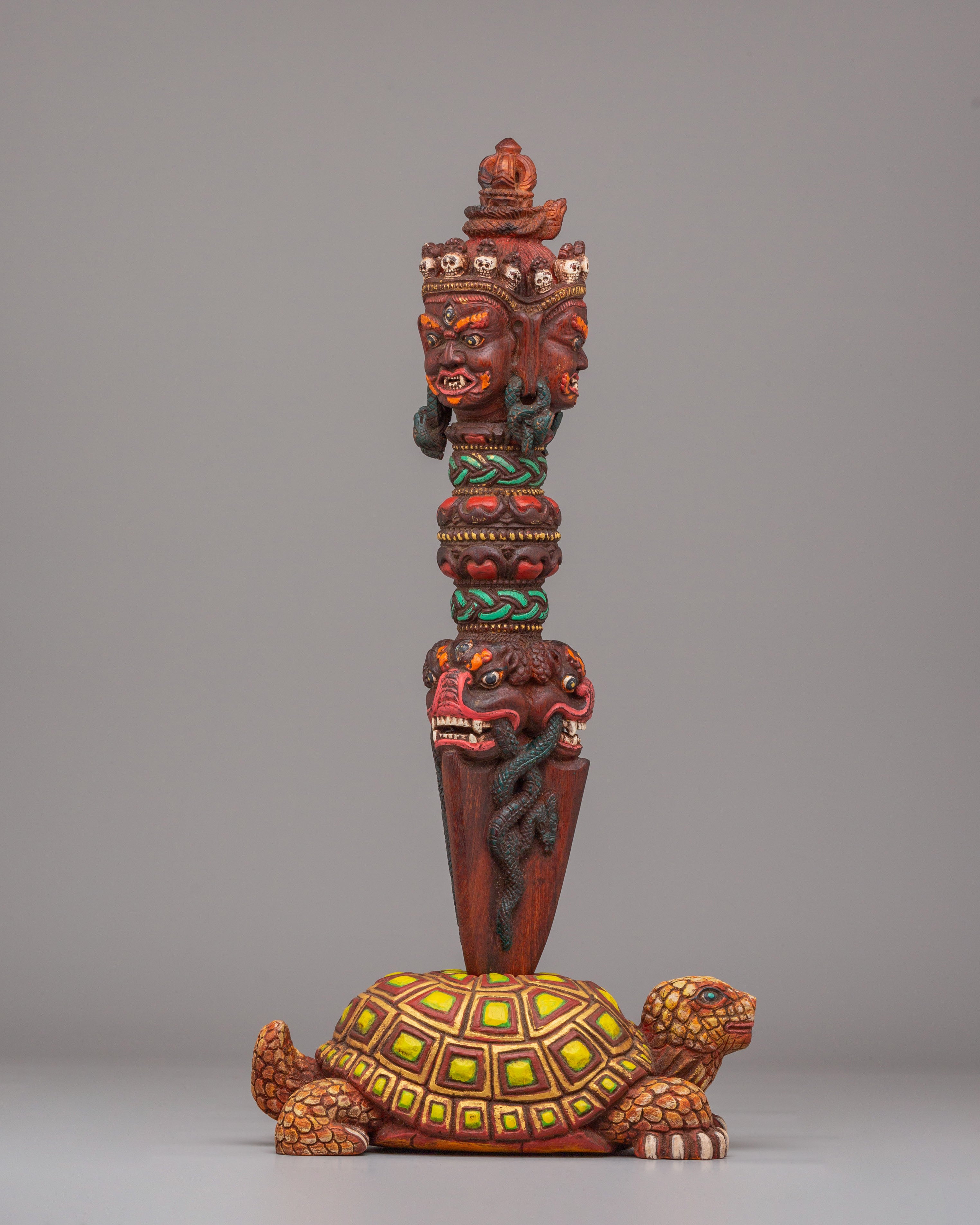Hand-Carved Phurba with Tortoise Base | Himalayan Artwork for Spiritual Protection and Altar Decor