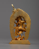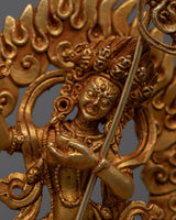 This beautiful statue honors Dorje Phagmo, who is regarded as a symbol of bravery and compassion, with dignity and respect. Its holy presence is amplified by the gold plating, which invites followers to experience the sublime aspects of the goddess and find comfort in her embracing embrace.