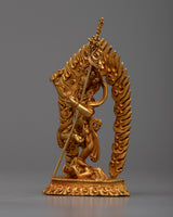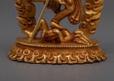 Presenting the Copper Dorje Phagmo Statue, a celestial representation of spiritual strength and enlightened understanding. This 11-cm-tall statue of Dorje Phagmo was carefully machine-crafted to replicate the minute intricacies of her figure. Its body is composed of copper. With its opulent 24k gold plating, it exudes a sense of sacredness and ageless beauty.