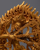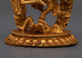 Introducing our Copper Machine-Made Kurukulla Statue, which is precisely sculpted on a copper body using a sophisticated machine-made method and embellished with opulent 24k gold plating. This magnificent statue, at 10cm tall, captures the heavenly spirit of Kurukulla, a beloved goddess in both Buddhist and Hindu religions.