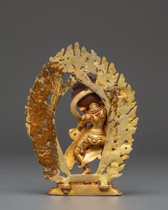 This Dorje Phagmo Fierce Female Deity Statue represents the fierce yet compassionate energy of Vajravarahi, the enlightened goddess of transformation and ultimate wisdom in Vajrayana Buddhism. This magnificent figure, 16cm tall and made from copper with a gold-plated finish, depicts Dorje Phagmo in her dynamic dance pose, symbolizing the eradication of ego and the awakening of genuine consciousness. Her meticulously carved fire halo represents the purifying flames of knowledge that remove ignorance and impediments from the spiritual path.